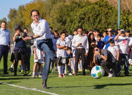 Mauricio Kuri y Chepe Guerrero entregan rehabilitación de cancha de futbol 11 en El Pueblito