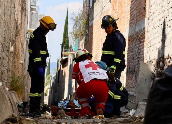 Bomberos de Querétaro y paramédicos de Cruz Roja, trabajaron en coordinación para realizar el rescate y atención del lesionado. Querétaro,…