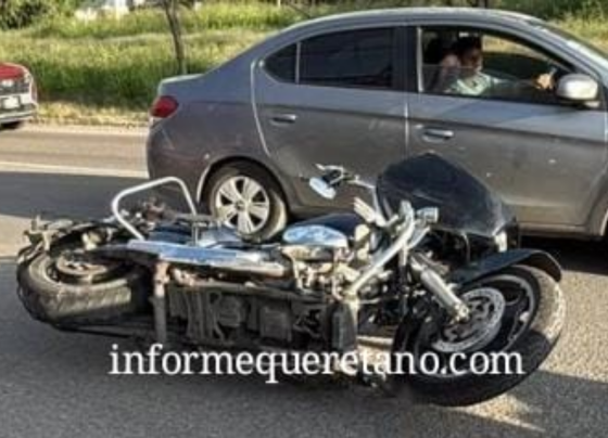 Un motociclista quedó en medio de dos vehículos tras una carambola por alcance en la colonia Tonatihu. Querétaro, Qro, a…