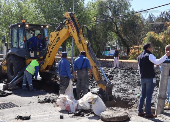 Trabajan a marchas forzadas para reparar socavón en Universidad