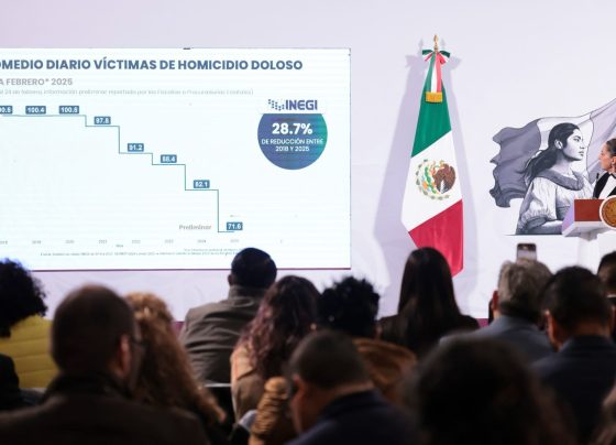 PRESIDENTA CLAUDIA SHEINBAUM DESTACA REDUCCIÓN DE 28.7% EN PROMEDIO DIARIO DE VÍCTIMAS DE HOMICIDIO DOLOSO