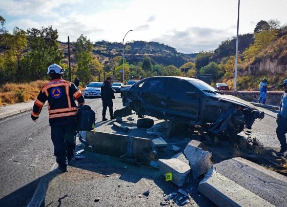Un vehículo fue proyectado contra el muro de contención que divide los carriles de contra flujo El Marqués, Qro, a…