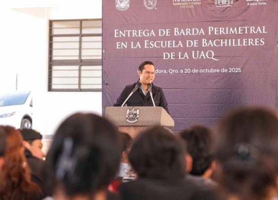Chepe Guerrero entrega barda perimetral en Escuela de Bachilleres UAQ, en Charco Blanco