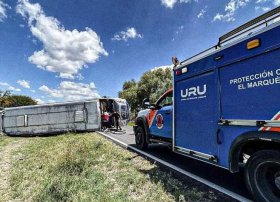 Otra de Flecha Azul camión terminó volcado en la carretera estatal 510 en El Marqués