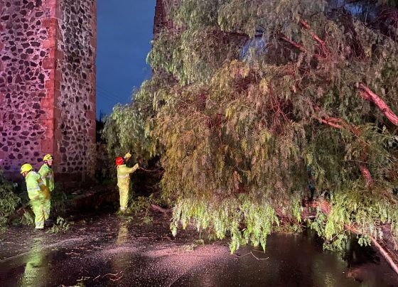 Árboles caídos en distintos puntos de la capital por la lluvia y ráfagas de viento de esta noche