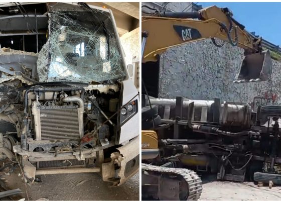 Un camión de transporte de personal se impactó a gran velocidad contra un camión de volteo el cual terminó volcado…