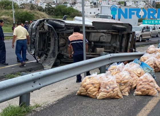 Vuelca camioneta cargada de bolillo en el Libramiento Sur Poniente