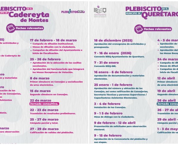 Las jornadas consultivas serán el 22 de marzo y el 26 de abril de 2026. Querétaro, Qro, a Jueves 18 de Diciembre del 2025.-El Consejo General del Instituto Electoral del…