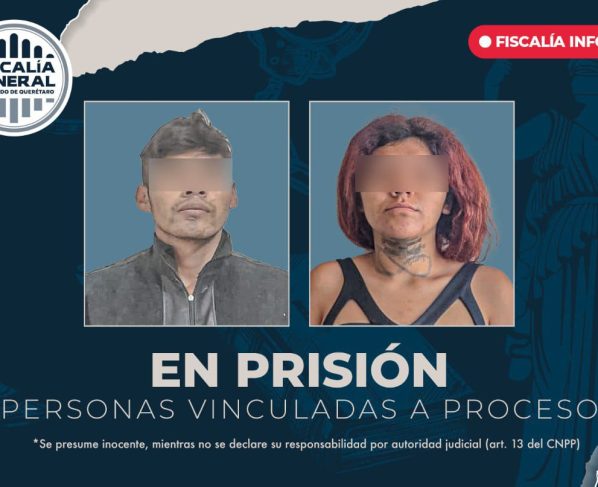 Querétaro, Qro, lunes 22 de septiembre del 2025.- La Fiscalía General del Estado obtuvo la vinculación a proceso y la imposición de prisión preventiva justificada para dos personas como probables…