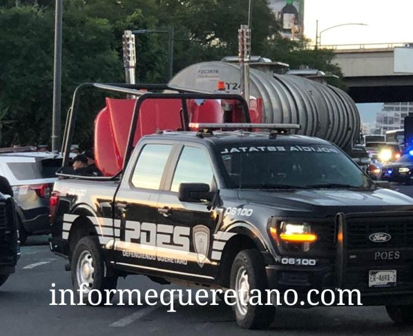 La pipa habría sido robada en la carretera Querétaro San Luis Potosí y fue ubicada circulando en el Paseo de la República, donde se inició la persecución. Querétaro, Qro, a…