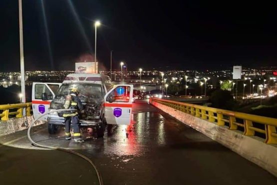 Arde ambulancia en el viaducto que conecta a 5 de Febrero con