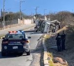 Vuelca camión en la subida a Vista Real